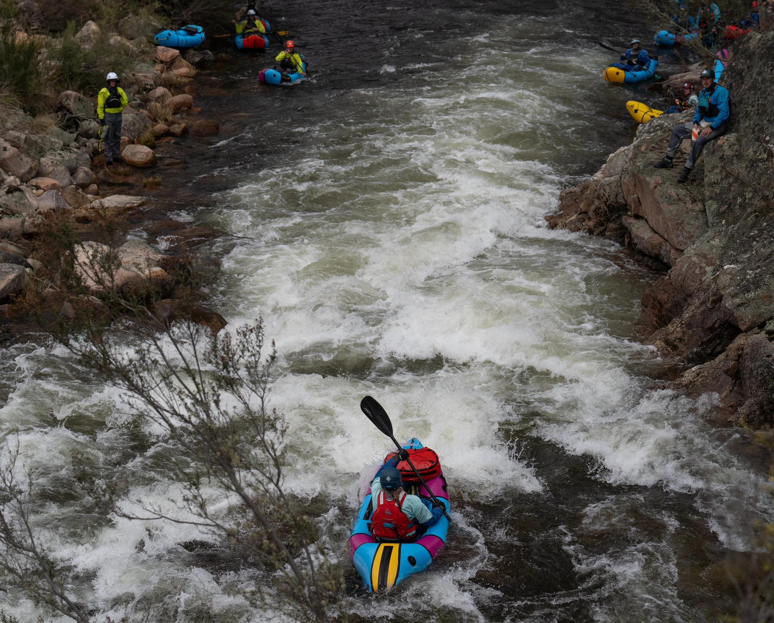 Packrafting Tasmania is in the process of signing off on a permit to deliver a 9-day river running course that sees participants tackling the mighty, world-heritage Franklin River. This journey is world-renowned and has been called one of the top 10 multi-day rafting trips in the world. The trip starts at the Collingwood River Bridge on the Lyell Hwy and finishes on the Gordon River. The river includes numerous challenging sections and portages. Note that sections of the river are dangerous in high water so instructors may need to alter or even cancel the trip in certain situations.